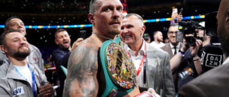 Усик побував на тренуванні зіркового чемпіона Фото: Getty Images Жанібек Алімханули Українець поділився порадами із казахстанським борцем, спостерігаючи за його Новини боксу