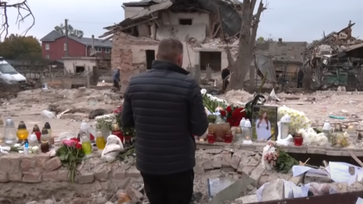 У село Лапаївка поблизу Львова, де 5 жовтня від російського обстрілу загинула 10-класниця Анастасія Гриців та її родина, з фронту приїхав батько загиблої школярки — Володимир.