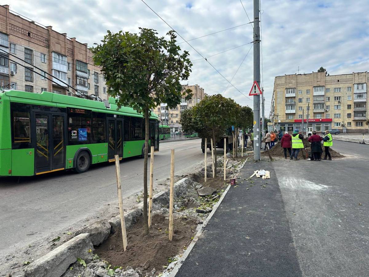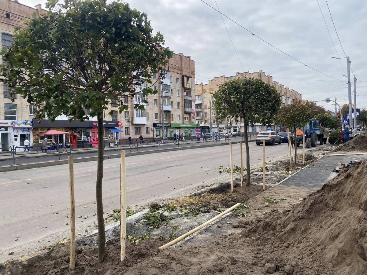 Цієї осені КП «Зеленбуд» продовжує роботи з озеленення різних частин міста — нові дерева та кущі висаджують на вулицях Київській, Чуднівській, Бориса Тена, Покровській та проспекті Незалежності.