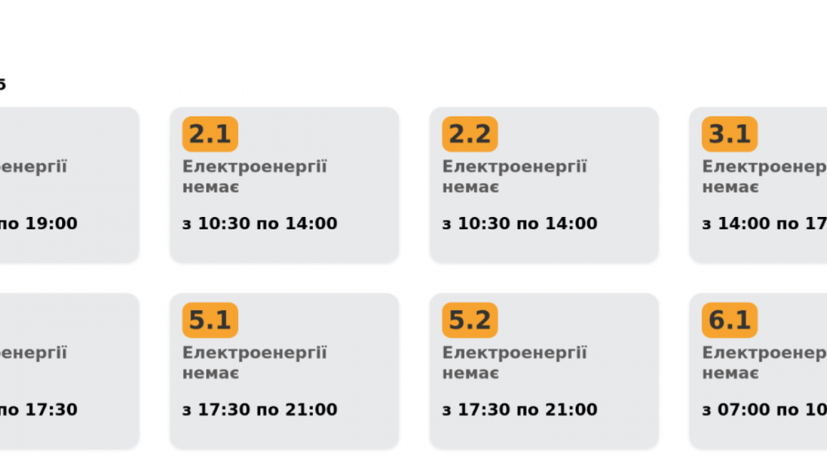 Найбільше — споживачі груп 4.1 і 3.2. Їм вимкнуть електроенергію на 1,5 години.
