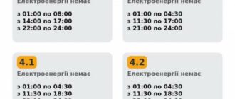 Група 1.2. Електроенергії немає з 00:30 до 04:00, з 10:00 до 14:30, з 18:00 до 21:30.