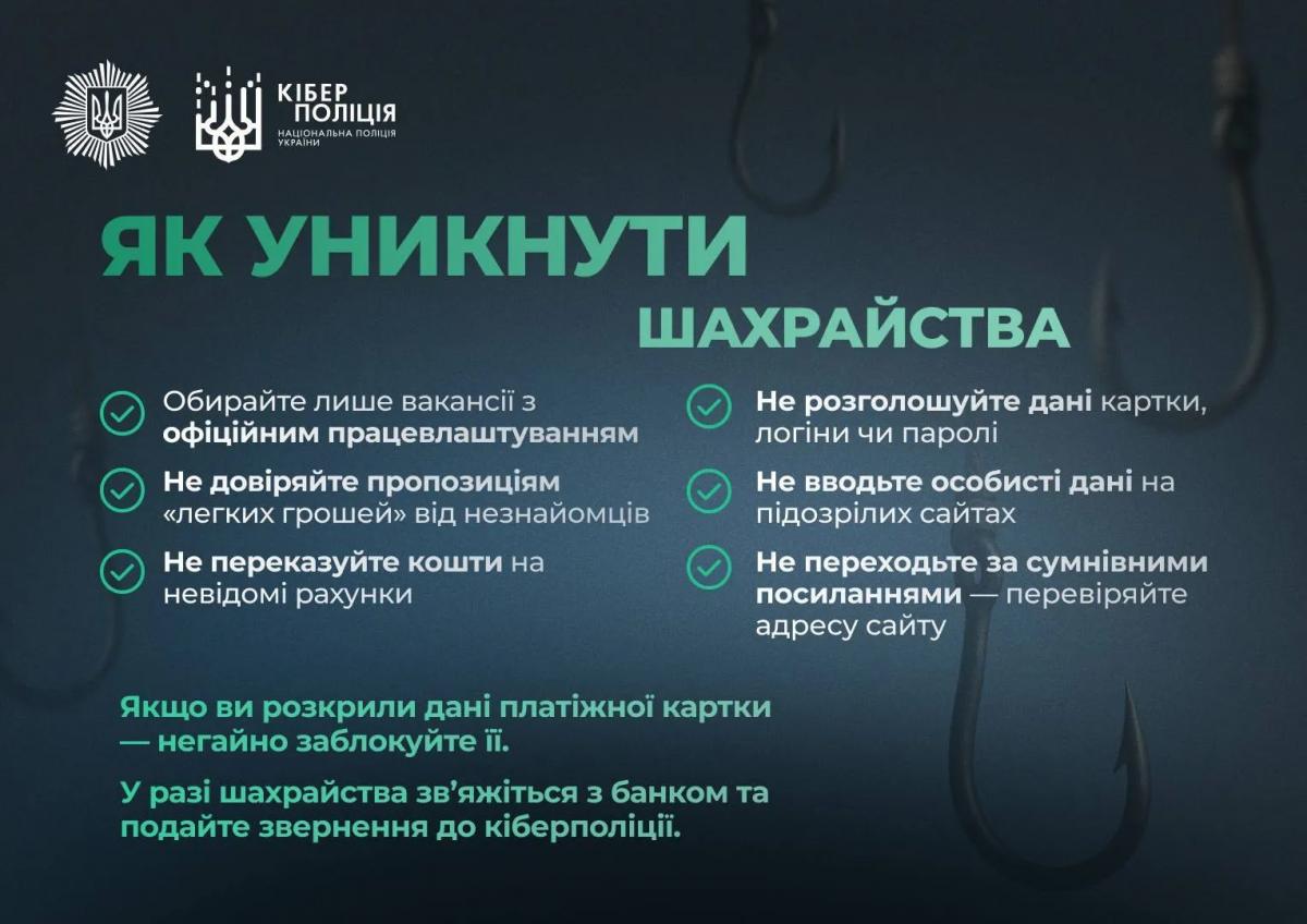 Якщо ж ви розкрили дані платіжної картки, негайно заблокуйте її та повідомте банк та подайте звернення у кіберполіцію.
