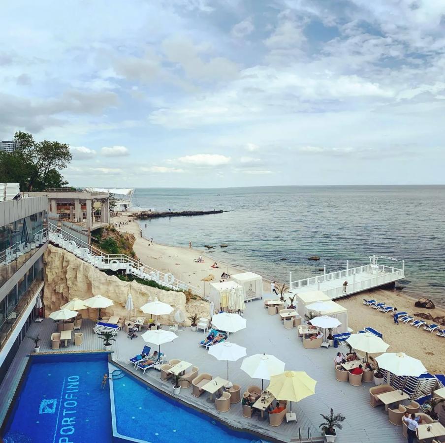 Пляжний готель Portofino Hotel Beach Resort — це сучасні ряди шезлонгів на чистому піску та 25-метровий басейн, для охочих дихати морським повітрям та безпечно купатися у воді. Територія та пейзажі тут, особливо мальовничі на сході та заході сонця. У вас буде шанс оцінити красу, займаючись йогою на високому дерев’яному пірсі, під шум хвиль та традиційні пісні чайок. Сучасні номери, ультрамодні шатри, та спа процедури в лазні й дров’яному чані наповнять ваше літо спогадами та релаксом. Якщо ви гість готелю комфортабельне «місце під сонцем» увійде в ціну бронювання. Денний відпочинок із шезлонгом у басейну буде коштувати 800 грн. Ліжко та бунгало на 4 особи можна винайняти за 3 500 — 4 000 грн.