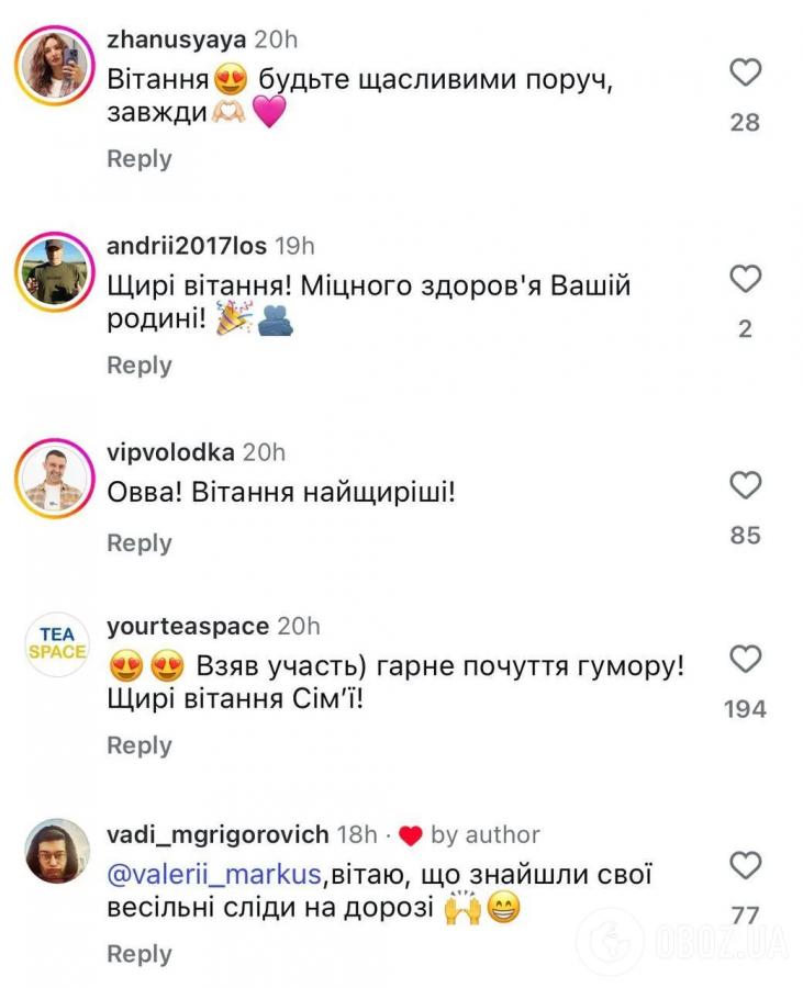 Підписники Валерія Маркуса щиро зраділи, коли дізналися новину про його весілля, тож залишили закоханим багато приємних слів у коментарях: