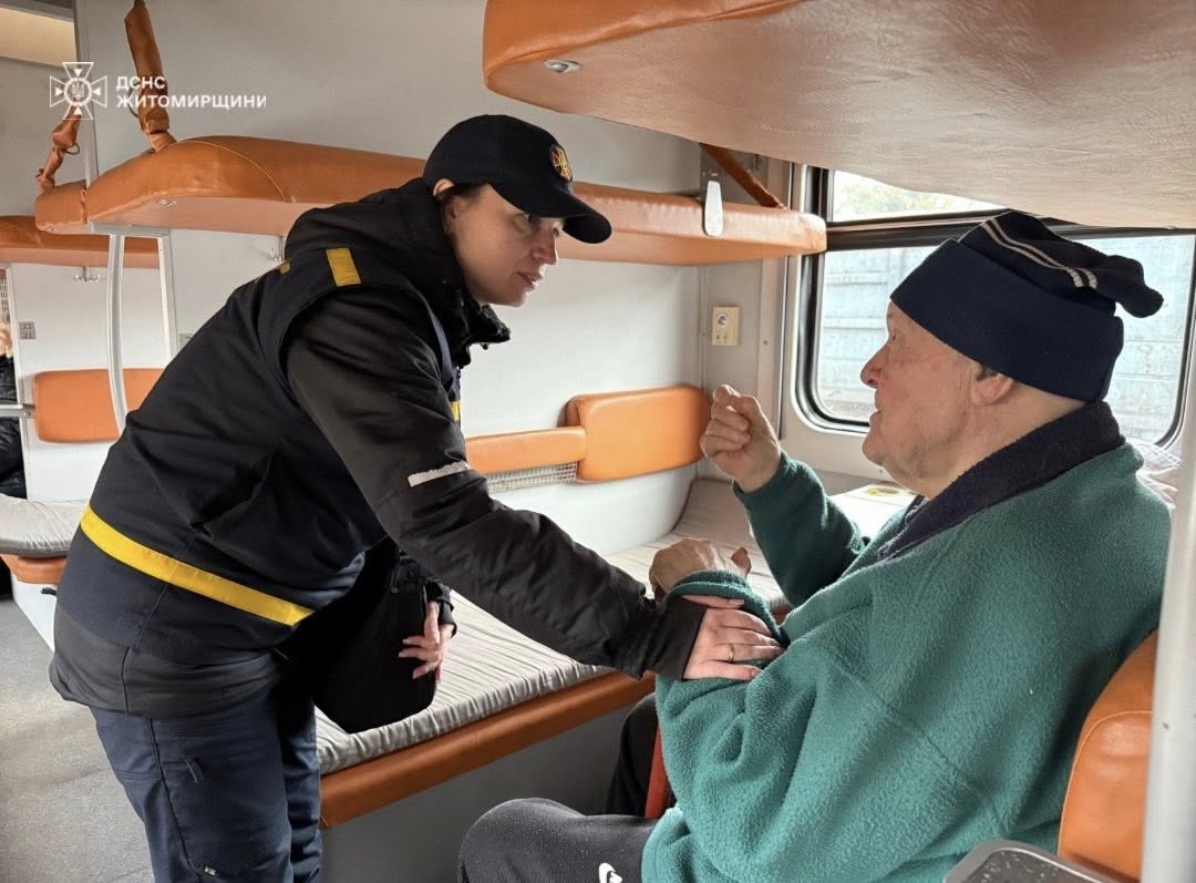 До Бердичева прибув евакуаційний потяг, яким із прифронтових територій евакуювали 30 людей похилого віку з інвалідністю — підопічних геріатричного пансіонату.