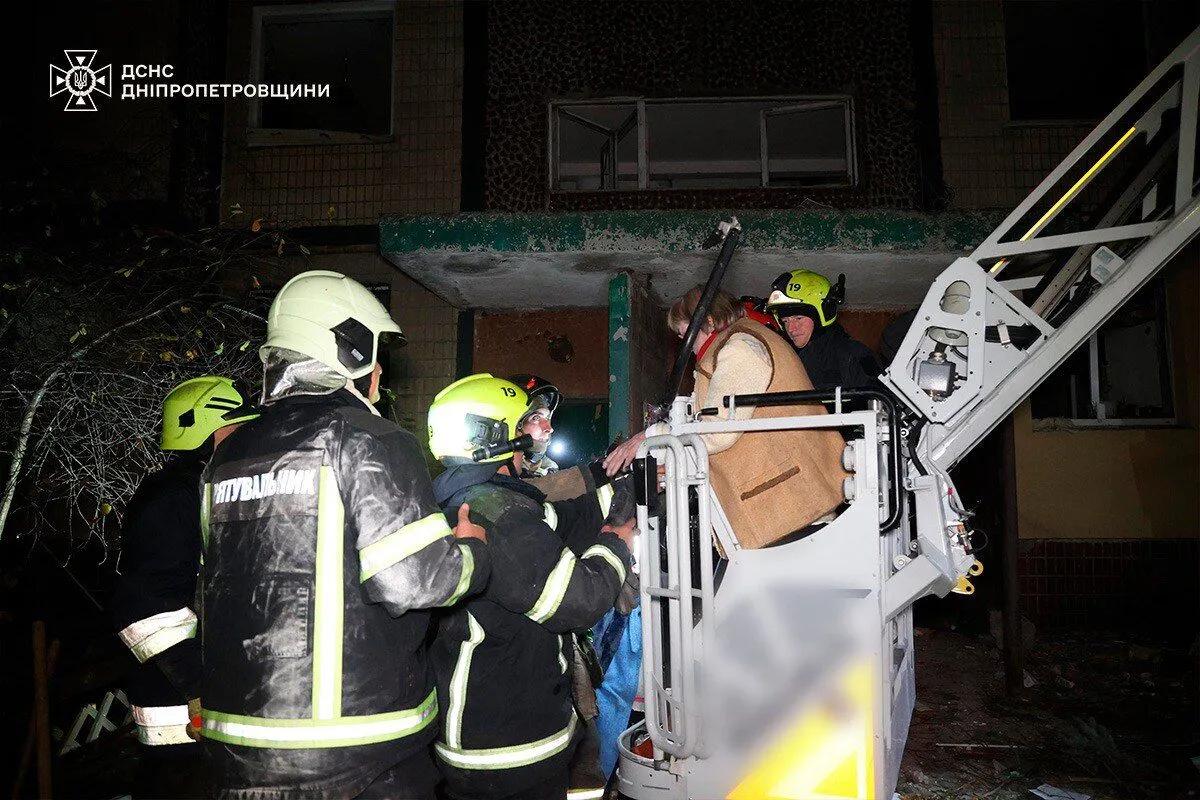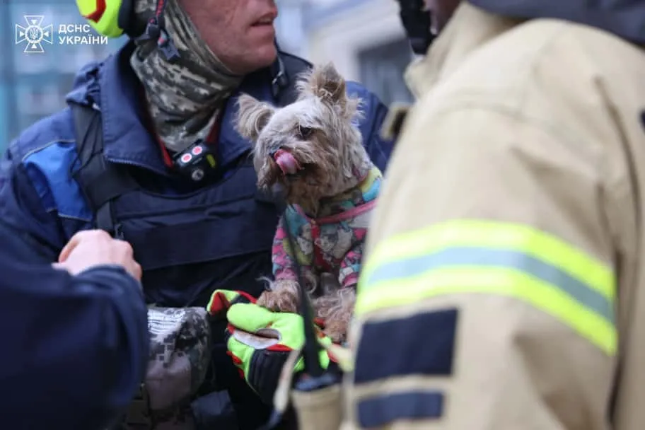Приліт пошкодив квартиру у епіцентрі вибуху, там спалахнула пожежа, яку ліквідували рятувальники. Надзвичайники врятували 23 дорослих та 5 дітей. Вже вдень з-під завалів дістали йоркширського тер’єра, господиня якого перебуває у лікарні.