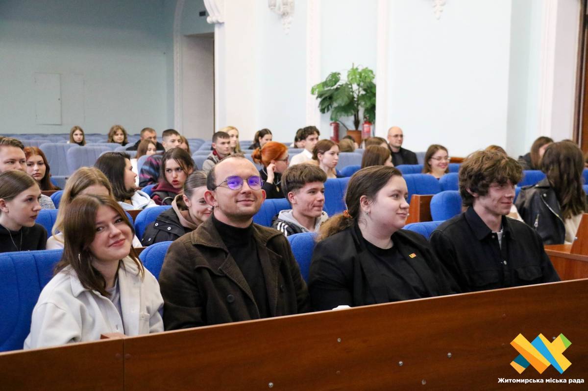 Першу лекцію прочитала начальниця управління у справах сім’ї, молоді та спорту міської ради Ірина Ковальчук, яка розповіла про розвиток сімейної, молодіжної політики та сфери фізичної культури і спорту у Житомирській міській територіальній громаді.