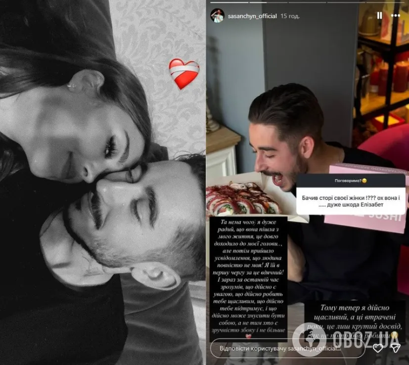 Його колишня дружина, блогерка Іванна Сасанчин, теж не залишилася осторонь. Спершу вона лише натякала, що закохана, а згодом уперше показала свого нового партнера. На зворушливих кадрах пара цілувалася під дощем.